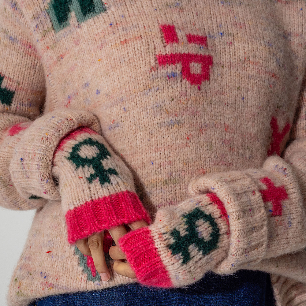 Soft as a cloud, strong as your convictions. These mittens are knitted in Portugal from Italian-spun baby alpaca for softness that lasts. Designed with a simple tubular shape and finished with our bold Venus symbol, they’re a small everyday layer that carries care, craft, and feminist values.