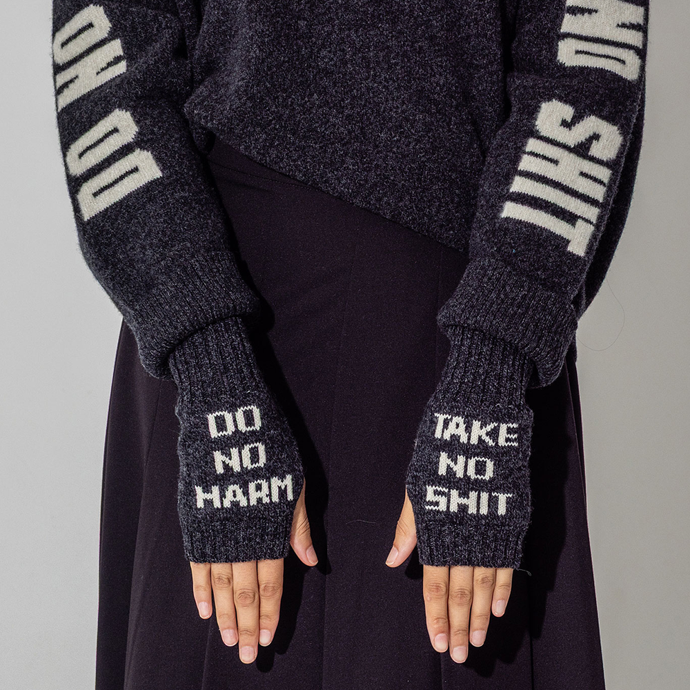 Elevate your winter style with our Do No Harm Wrist Warmers. Knitted in Scotland from Italian-spun superfine merino, they blend luxury craftsmanship with bold feminist spirit.