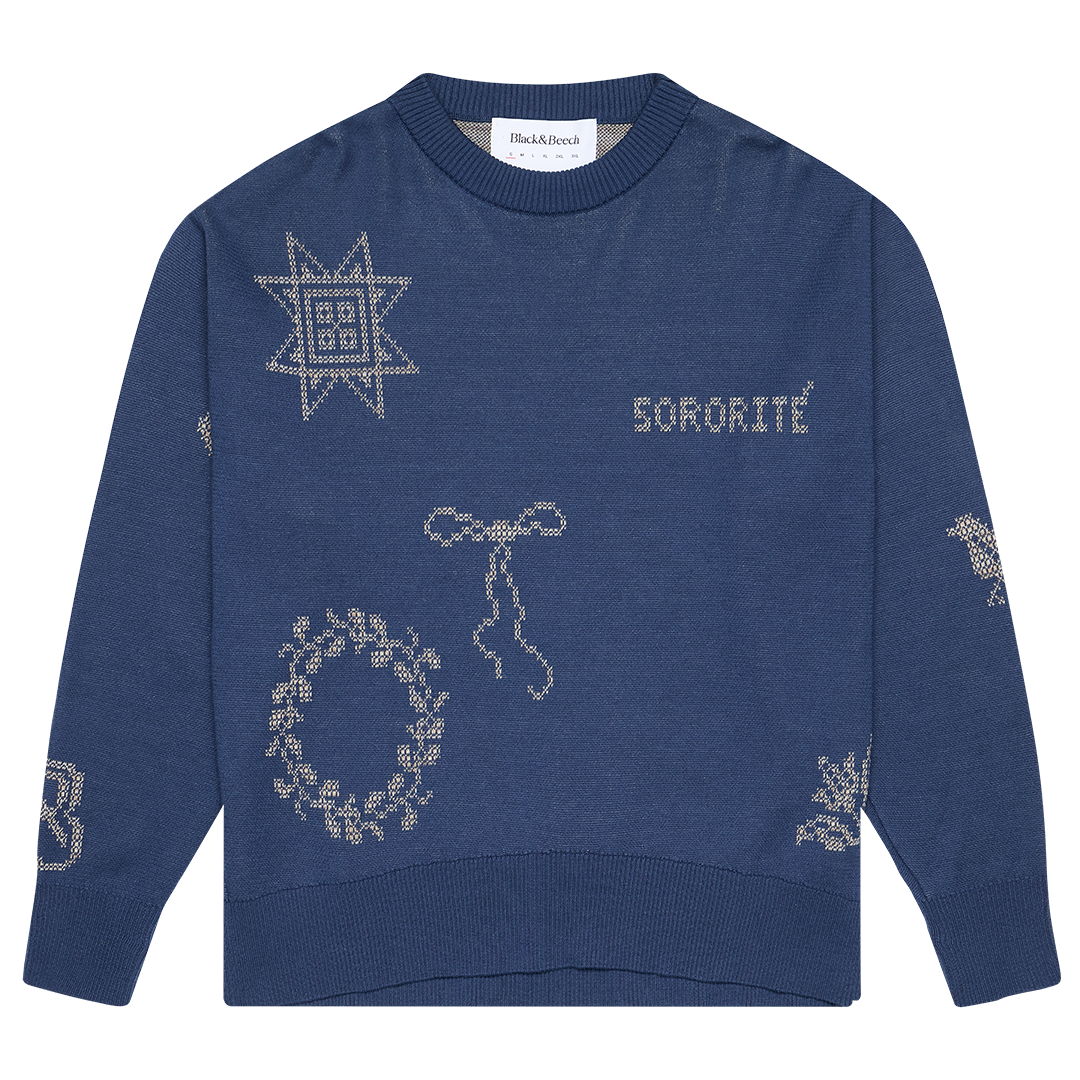 Cross Stitch Jumper in Midnight & Putty