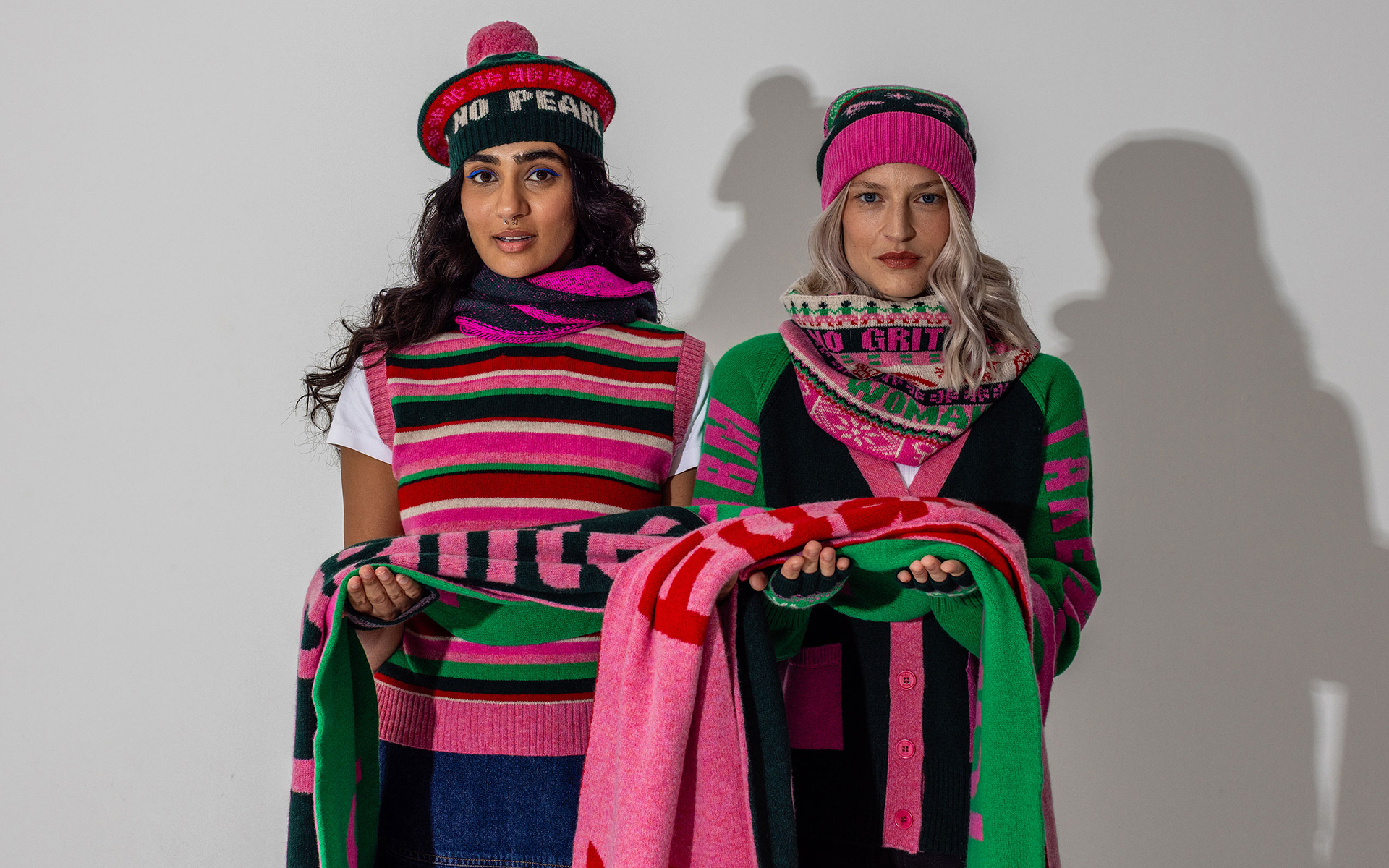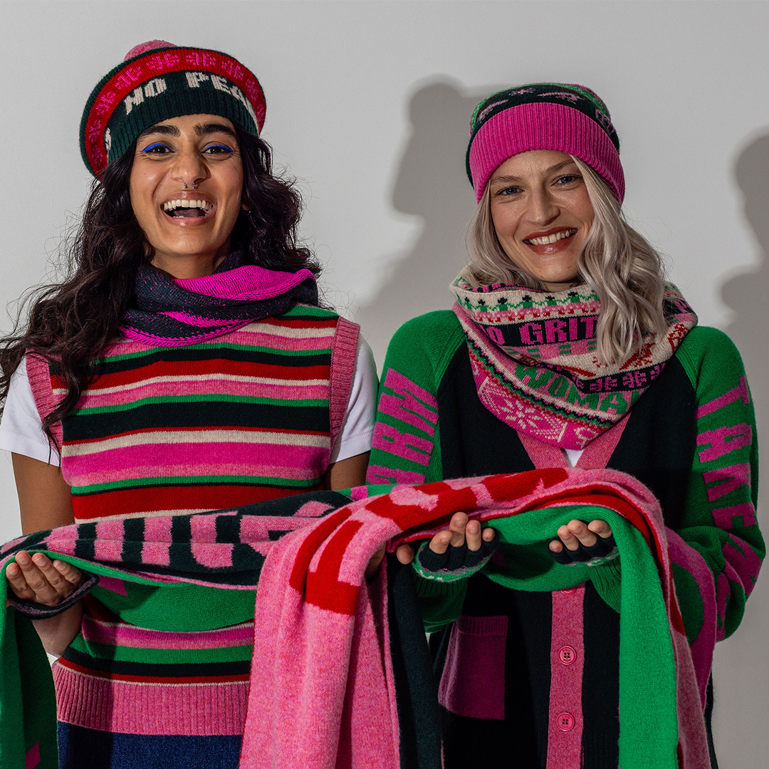 Our knit accessories are made in small batches in Scotland, where craft and tradition run deep. Each piece is knitted by skilled makers using natural fibres, designed to last season after season. Small runs mean less waste, more care, and something truly special for the people who wear them.