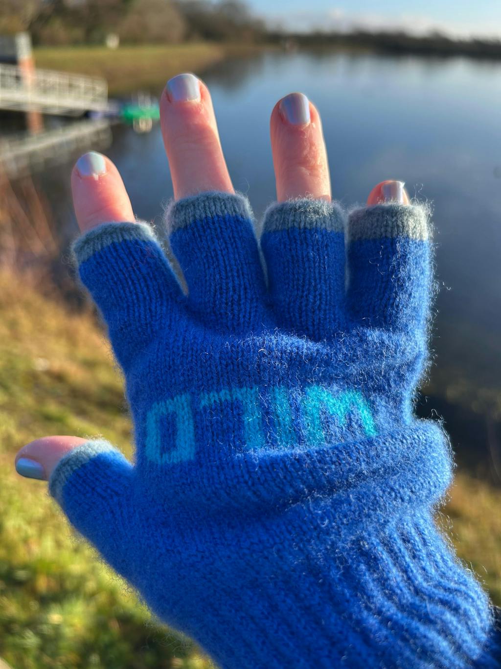 Wild Swim Fingerless Gloves in Klein Blue & Neon Blue